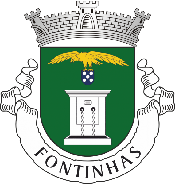 Brasão - escudo verde, fontanário de prata realçado de negro; em chefe, açor estendido de ouro, carregado nas patas de uma quina das armas de Portugal. Coroa mural de prata de três torres. Listel branco, com a legenda a negro "FONTINHAS".